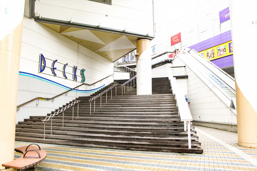 ⑤デッキに着いたら、そのままテナント側へ進みます