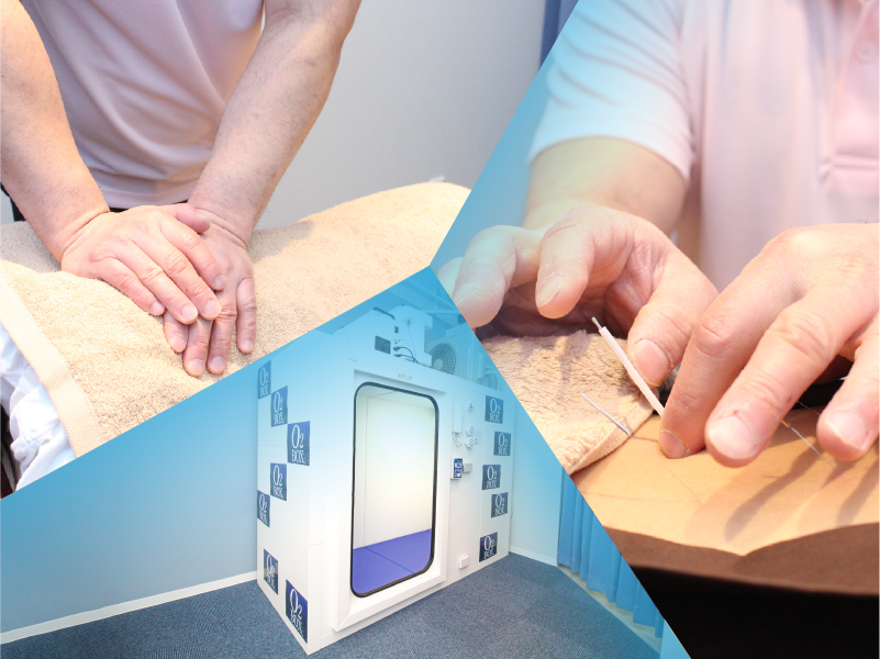 当院は「整体」「鍼灸」「大型酸素カプセル」など、様々な施術方法を用いてお悩みの解消を目指しています。